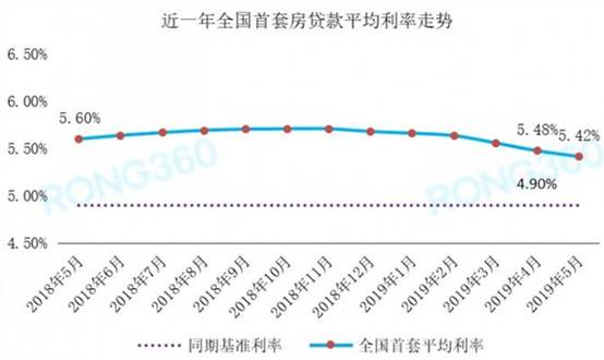 ??根據(jù)融360大數(shù)據(jù)研究院發(fā)布的《中國房貸市場報告》顯示,2019年5月,全國首套房貸款平均利率為5.42%,較4月環(huán)比下降6BP;二套房貸款平均利率為5.74%,環(huán)比下降8BP,目前均為2018年以來最低水平。